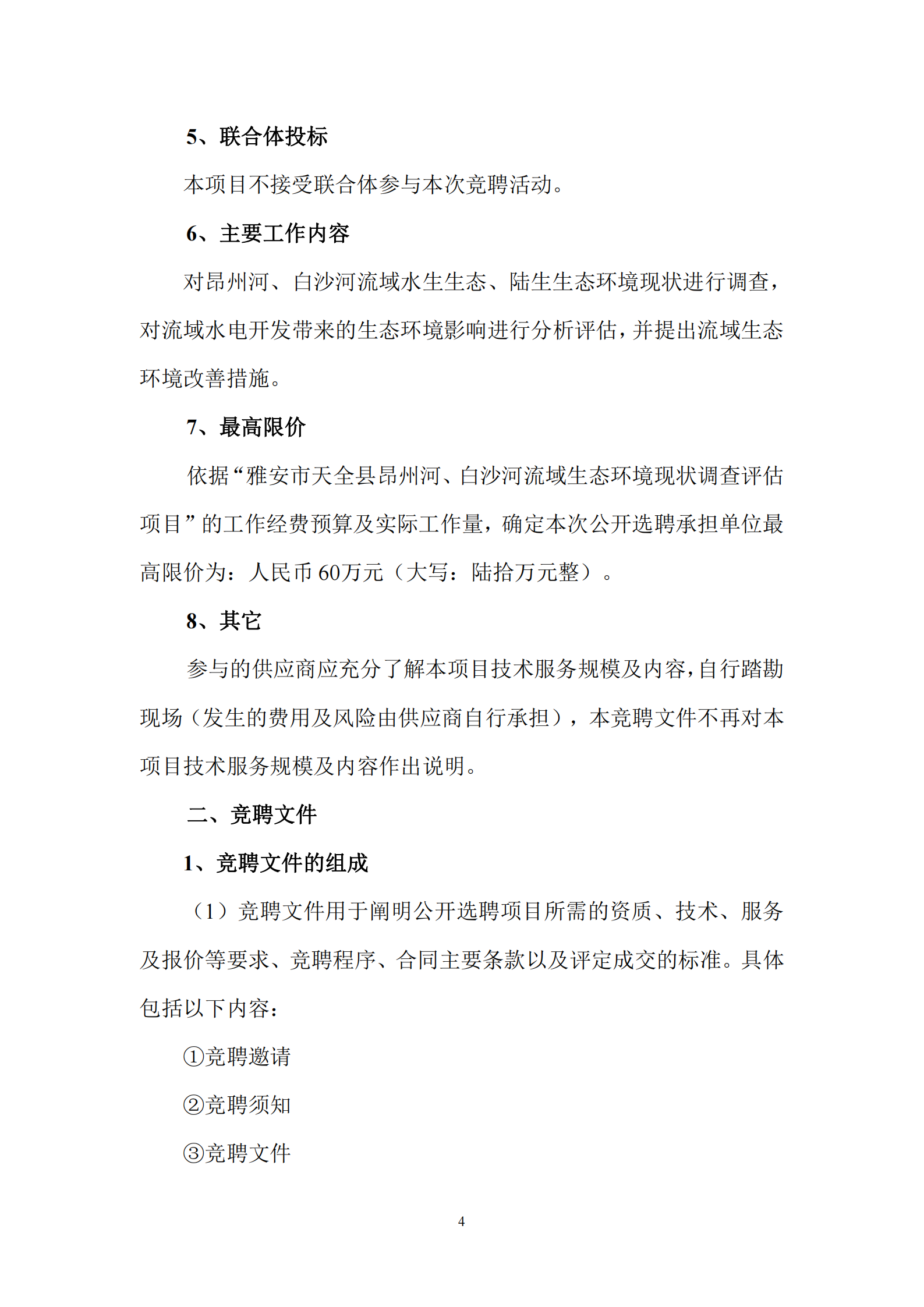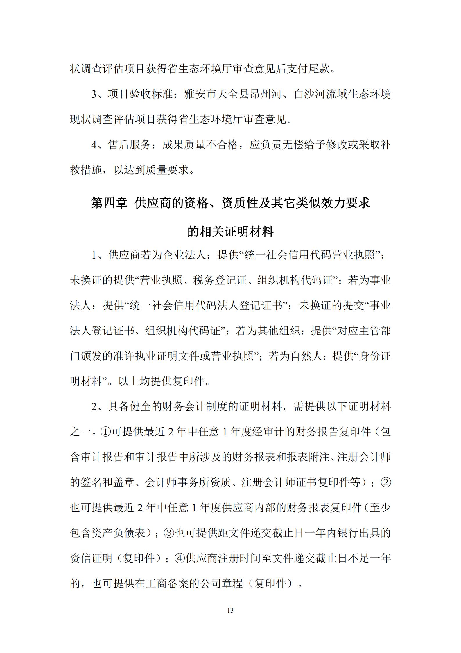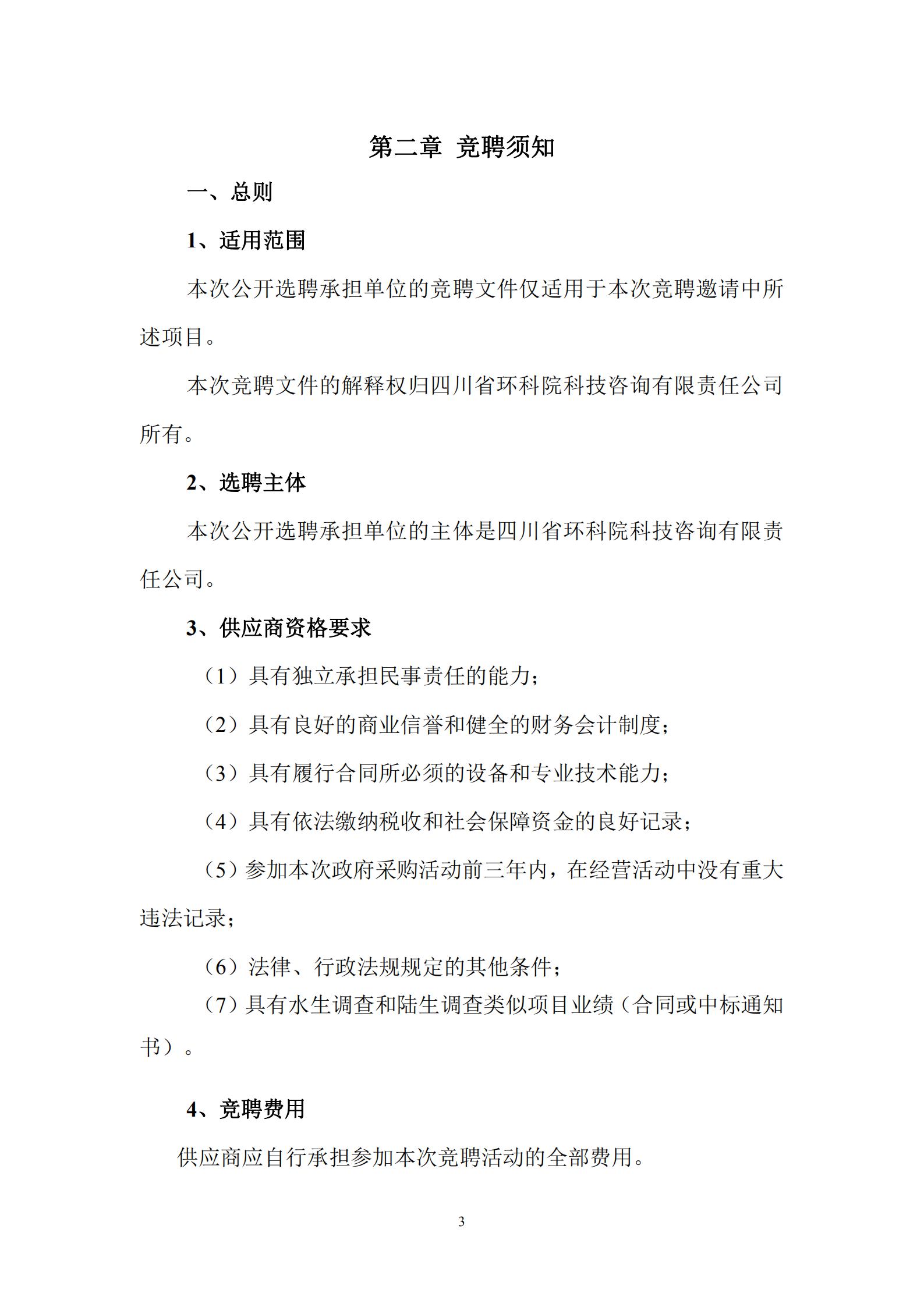 我公司擬就“雅安市天全縣昂州河、白沙河流域生態(tài)環(huán)境現(xiàn)狀調查評估項目”工作公開選聘承擔單位。現(xiàn)邀請合格的供應商參加公開選聘承擔單位的競聘活動,選聘文件如下: